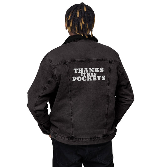 "Thanks it has pockets" denim sherpa jacket